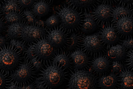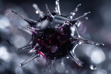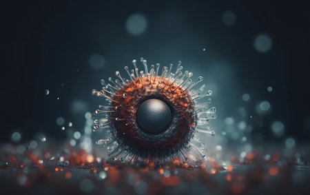 An AI generated illustration of A vibrant virus on a black surface with a blurry background