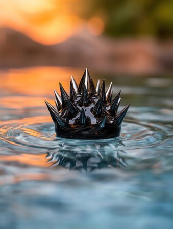 A magnetic fluid exhibits striking spiky formations on a reflective surface while being manipulated.