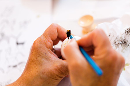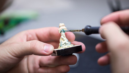 Artistry in Miniature: A Skilled Artisan Carefully Painting a Delicate Figurine with Precision and Patience in a Well-Lit Workshop Setting