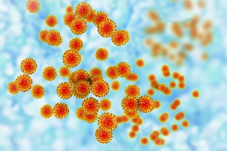 Microscope close up of meningitis bacteria, also known as meningococcus 3D Illustration