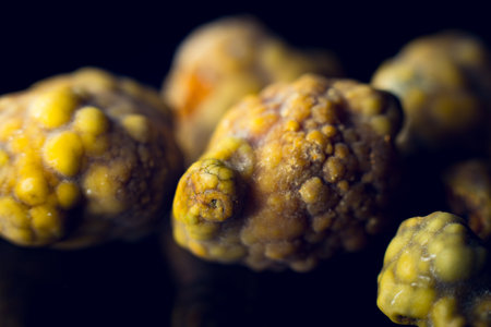 a closeup of a clump of fungus on a twig