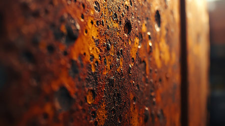 Macro view of rusted metal, showcasing its textured patina and rich colors for an industrial vibe.