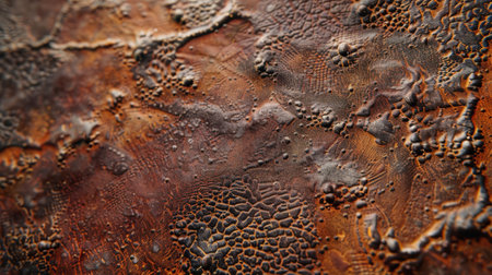 This close-up photo showcases the unique textures and weathered appearance of a vintage, rusted metal surface, A macro study of a rusted metal surface, AI Generated