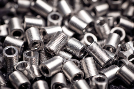 A collection of shiny, interlinked metal inserts arranged in a haphazard heap, highlighting essential fastening hardware utilized for durable construction and machin