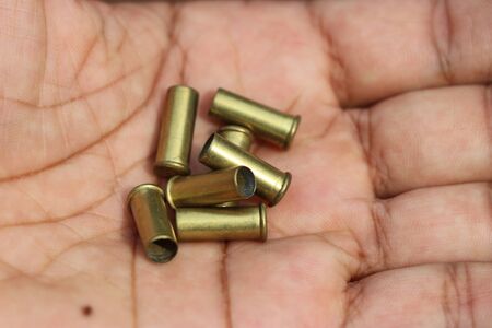 Used bullet shells from a revolver held in group