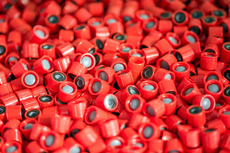 Cap test tubes red for use as backgroud ,texture and wallpaper.