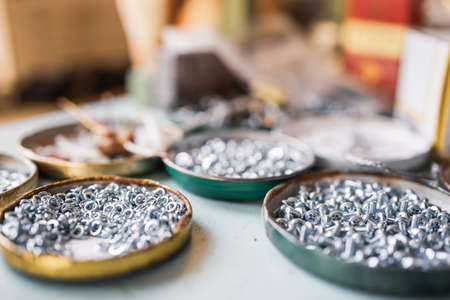 Zinked and anodized screws frame Close-up Macro