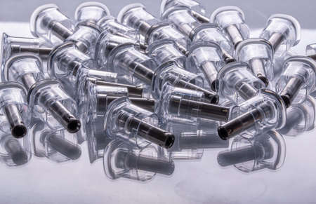 Abstract image of medical plastic and steel product part , Made from injection molding machines