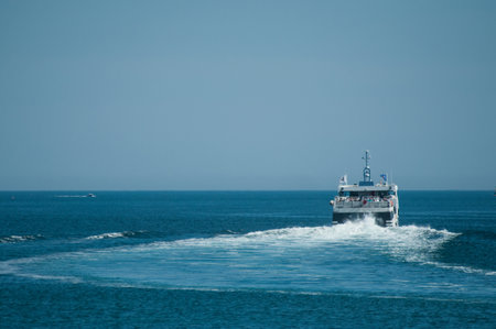 A ferry transporting passengers between coastal islands, providing essential transportation across the ocean