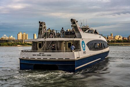 NEW YORK, USA - OCTOBER 08: View of a ferry boat crossing the East River to Brooklyn, these boats are a type of public transportation on October 08, 2019 in New York