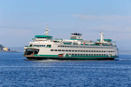 Seattle, Washington, USA - july 21, 2018 - Ferryboat on Elliot bay, Seattle, Washington