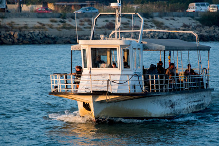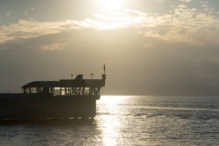 Passenger ferry in the sea at sunset. Passenger ship on the water.