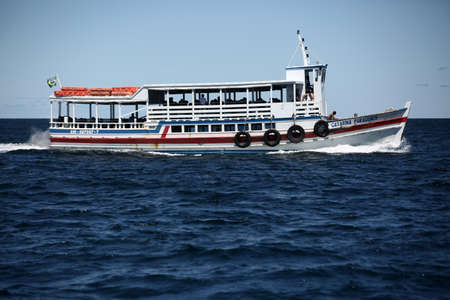 salvador, bahia, brazil - august 28, 2017: speedboat for transporting people for crossing from Mar Grande to Salvador through the BaÃa de Todos os Santos.