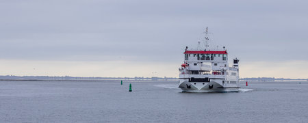 Ferry crossing the Wadden sea UNESCO world heritage to Wadden island Schiermonnikoog in The Netherlands