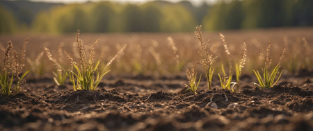 Softly Illuminated Fertile Soil with Dew Drops and Dark Transitions