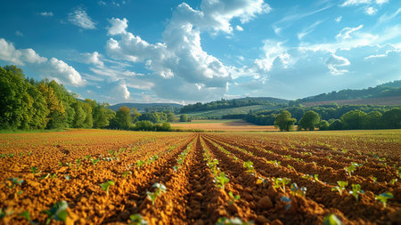A Serene Morning in the Lush Agricultural Fields, Embraced by Natures Beauty and Growth