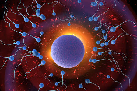 Sperm and egg cells. 3D illustration. 3D rendering.