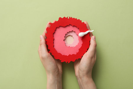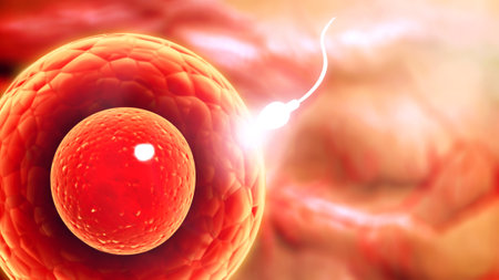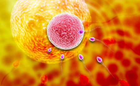 Fertilization of an ovum with a sperm. Concept of medicine, science and research. Abstract illustration