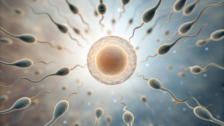 Sperm fertilizing an egg cell, representing the beginning of human life and key concepts in fertility treatment, reproductive medicine, and biological conception under a microscope