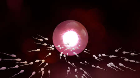 Swimming sperm race to impregnate a fertile human egg 3D digital illustration