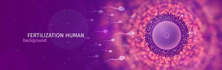 Natural fertilization web banner. Sperm and egg vector illustration. Reproductive medicine health care pregnancy background.