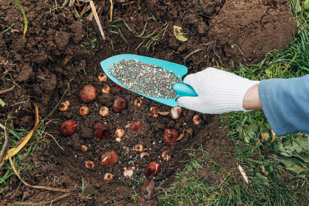 top dressing with granular fertilizer for spring bulbous plants when planting