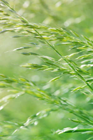 Smooth brome seeds close-up view with green blurry background