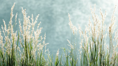 Grasses rise elegantly against a tranquil blue sky capturing a serene outdoor moment. Nature thrives in this peaceful scene.