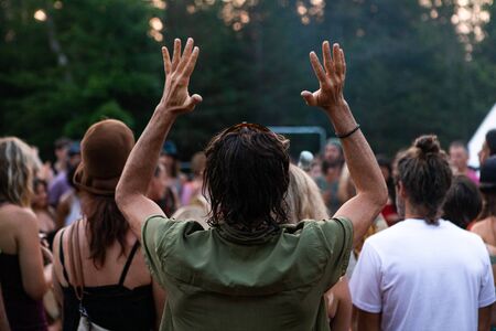 Crowd cheering at a music festival - Happy people having fun at a music festival