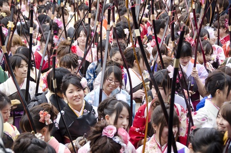 Coming of age day archery competition at Sanjusangendo Temple in Kyoto, Japan. Toshiya festival.