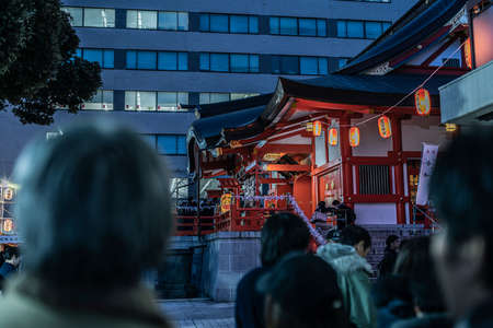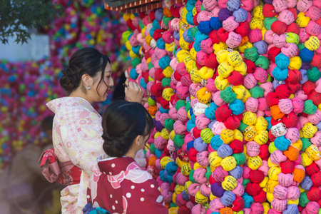 Unidentified people in traditional clothes at the celebration of Mid Autumn Festival in Kamakura, Japan.