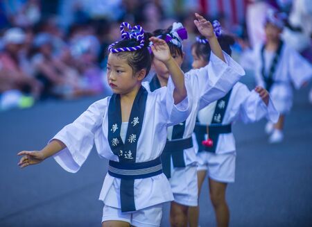 TOKYO - AUG 26 : Participants in the Awa Odori festival in Tokyo, Japan on August 26 2018. Awa Odori is the largest dance festival in Japan