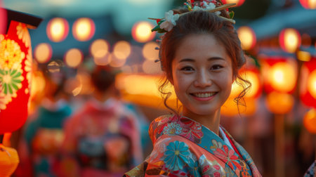the Bon Odori festival in Japan, happy woman