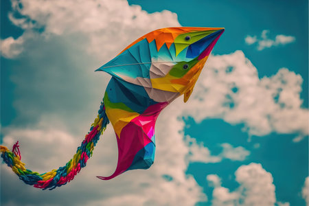 A kite flying against a clear blue sky, is a popular Sinhalese New Year activity. The kites are brightly colored, reflecting the joy and freedom associated with the celebration of new beginnings.