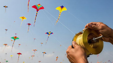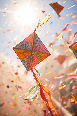 Vibrant kite flying for makar sankranti hindu celebration of sun deity and harvest season