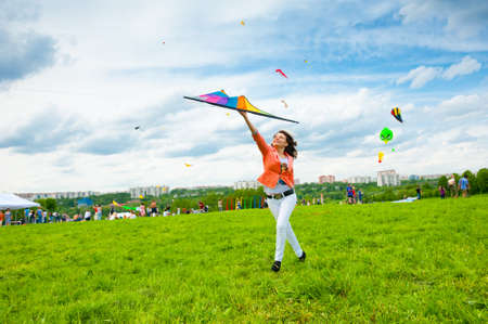 MOSCOW - MAY 25: Unidentified people fly kites at the kite festival in the park Tsaritsyno on May 25, 2013 in Moscow.