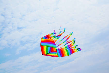 Multicolored kite on a background of sky.