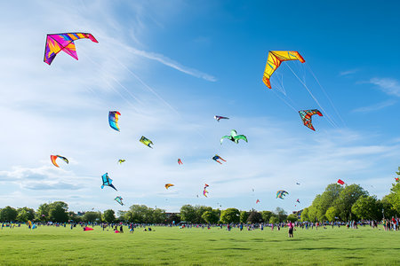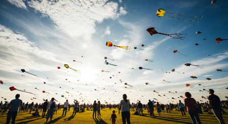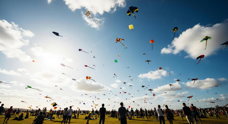 Joyful and Vibrant Kite Flying Festival with Colorful Kites Soaring in the Sky Capturing the Spirit of Freedom Community and Through the Playful Dance of Kites in the Wind