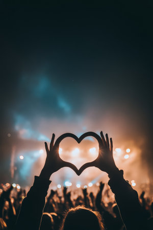 concert background, hand up , blurry background, beautiful bokeh live concert
