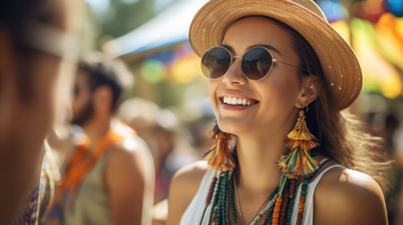 Casual portrait of young Latin woman in summer festival. Generative AI