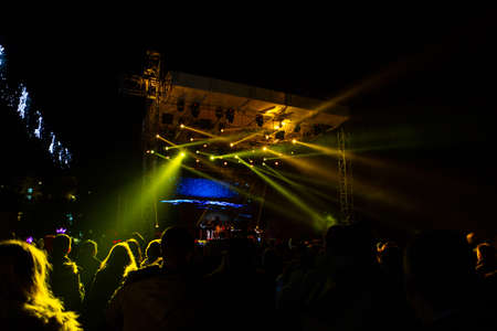 Crowd in front of stage at night street concert
