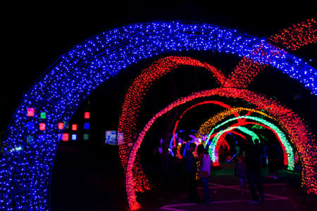 Illuminated archway with glowing lights forming a stunning nighttime display
