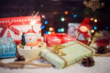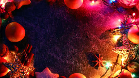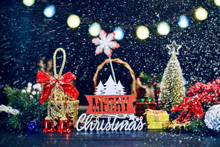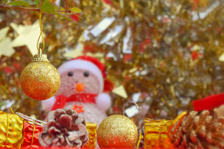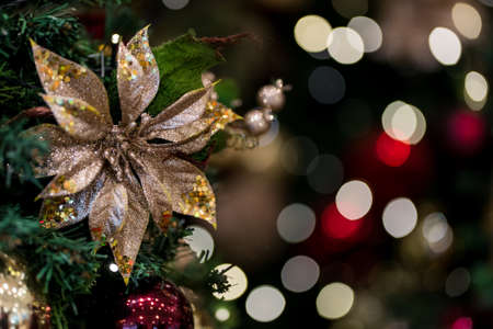 Christmas decoration, Christmas and New Year holidays background, winter season with Christmas ornaments and blurred lights