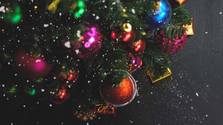 Closeup of Christmas-tree decorations, beautiful holiday backgroundor wallpaper
