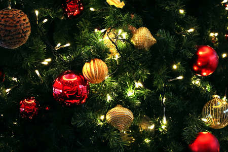 Christmas decoration in Christmas tree with Christmas lights