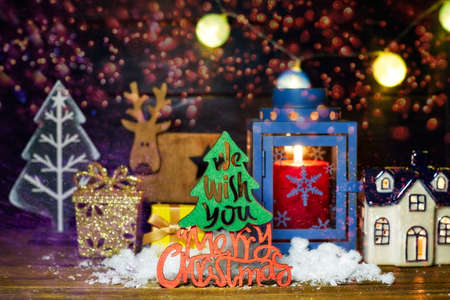 Christmas xmas vintage decoration on the wooden background