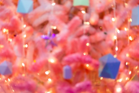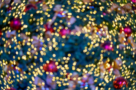Blurred colorful lights abstract background with christmas tree and ornamental decorations.