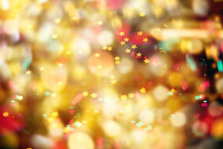 natural bokeh and bright golden lights. Vintage Magic background with colorful bokeh. Spring Summer Christmas New Year disco party
