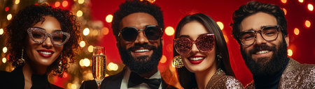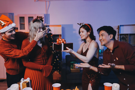 Friends celebrating Christmas or New Year eve at home