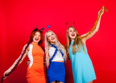 Young nice girls have fun on a party